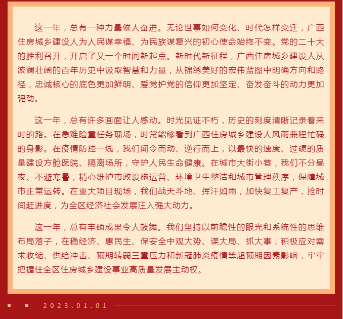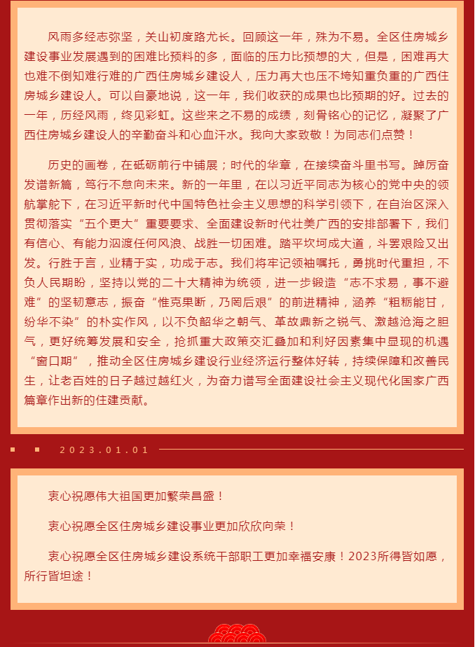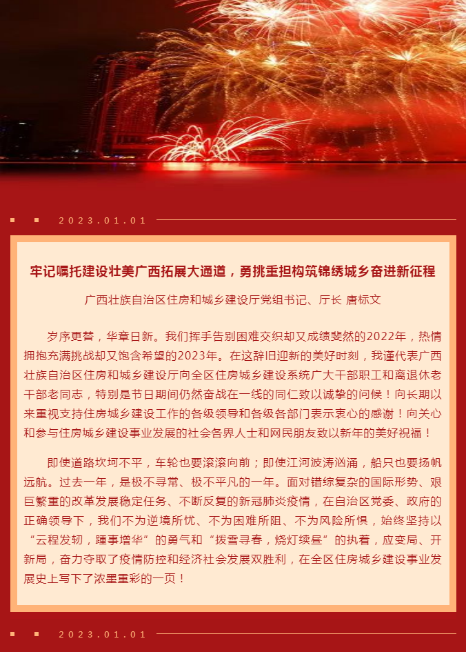 广西壮族自治区住房和城乡建设厅2023年元旦献词