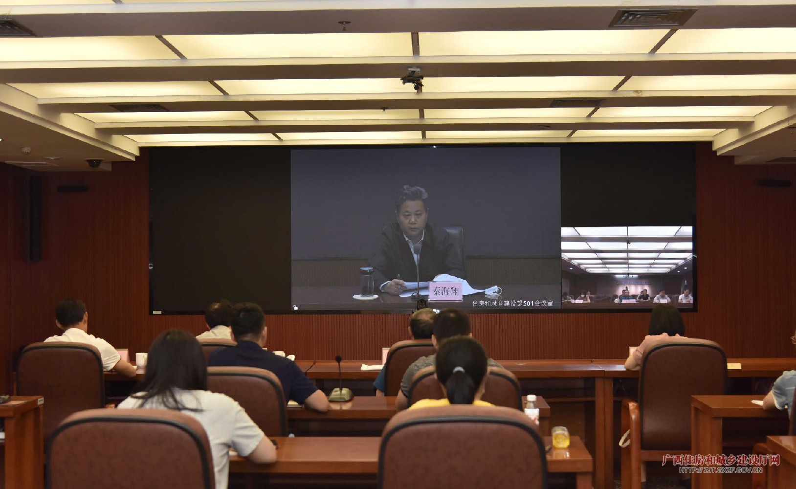 自治区住房城乡建设厅有关处室负责人在广西分会场参加会议。桂林市、钦州市、玉林市、百色市住房城乡建设局,恭城瑶族自治县、浦北县、兴业县、凌云县住房和城乡建设局相关负责人在当地分会场参加会议。(黄诗谊/文、图)