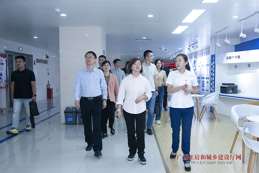 刘占华(中)一行到南宁市市民中心工程项目并联审批窗口实地督查,潘国雄(左一)陪同