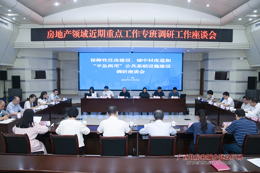 11月3日,住房和城乡建设部住房保障司二级巡视员王超带队到广西南宁市调研,并召开房地产领域近期重点工作专班调研工作座谈会,详细了解全区和南宁市“三大工程”推进情况,研究存在的问题和困难,并对广西“三大工程”工作提出要求。自治区住房城乡建设厅党组副书记、副厅长、一级巡视员汪夏明主持会议并讲话。