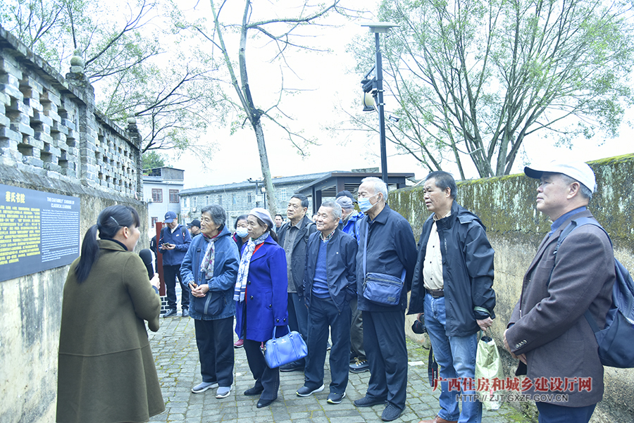 在宾阳县古辣镇,老同志们沿着干净整洁的乡路巷道边走边看,仔细聆听工作人员介绍古辣香米产业基地、稻花香里核心区发展情况,参观大陆村村容村貌和蔡村蔡氏书院等,对宾阳县传统村落保护工作取得的成绩与发展变化表示肯定与期待。